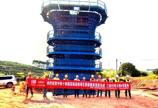3月23日,深南高鐵項目三家村特大橋4號墩順利完成混凝土澆筑,標志著項目四工區(中鐵十四局管段)首座墩身澆筑成功,為該標段橋梁工程建設按下“加速鍵”。作為全線重難點工程之一,該橋全長853.37米,需完成200根樁基及25個承臺墩柱,采用預制簡支箱梁架設工藝。首墩澆筑成功不僅為后續橋梁施工樹立了標準化樣板,更為復雜地質條件下的墩身施工積累了寶貴經驗。